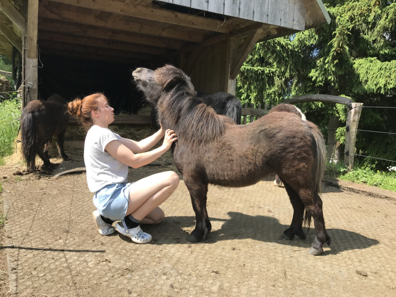 Má krásnou hustou hřívu a ocas. Tiff je mazlilka, která se kolem mě pořád motá a přibíhá na zavolání. Někdy se chová spíše jako pes, než jako kůň. Oproti shetlandům z GB je trochu nohatější, vhodná do jezdeckého sportu. Má prostorné chody a vstřícnou povahu k práci. Tiffany je nesmírně milá a komunikativní kobylka.